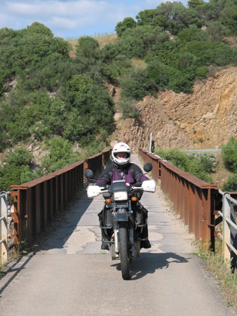 An der Ostküste entlang und mitten durch Cágliari hindurch, was aber überhaupt kein Problem war, geht es entlang der tollen Küstenstraße nach Villasimius, und immer noch dem Küstenverlauf folgend zur Costa Rei und Richtung Capo Ferrato. Wie ist dieser unbefestigte Streckenabschnitt Richtung Norden im Reiseführer beschrieben: "... ist sehr schlecht und eigentlich nur geländetauglichen Fahrzeugen zu empfehlen." Die Geländetauglichkeit gestehe ich unseren Motorrädern durchaus zu, jedoch ist es wohl nicht jede Fahrerin ;-). So kehren wir wieder um und erreichen die SS125, der wir Richtung Norden folgen. Sie ist sehr gut ausgebaut, und fahrerisch keine wirkliche Offenbarung. Natürlich gibt es Alternativen, die wollten wir uns aber für eine Tagestour ohne Gepäck aufheben.