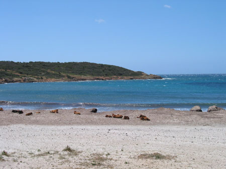 Tja, das ist der Unterschied. Bei uns stehen die Kühe auf der Wiese, auf Sardinien liegen sie am Strand!
