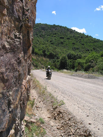 Über Tergu erreichen wir die SS 127 nach Mártis. Sehr endurofreundliche Straßenbauer haben auf einem Teilstück den Teerbelag weggefräst und eine kurze Schotterstrecke zurückgelassen.