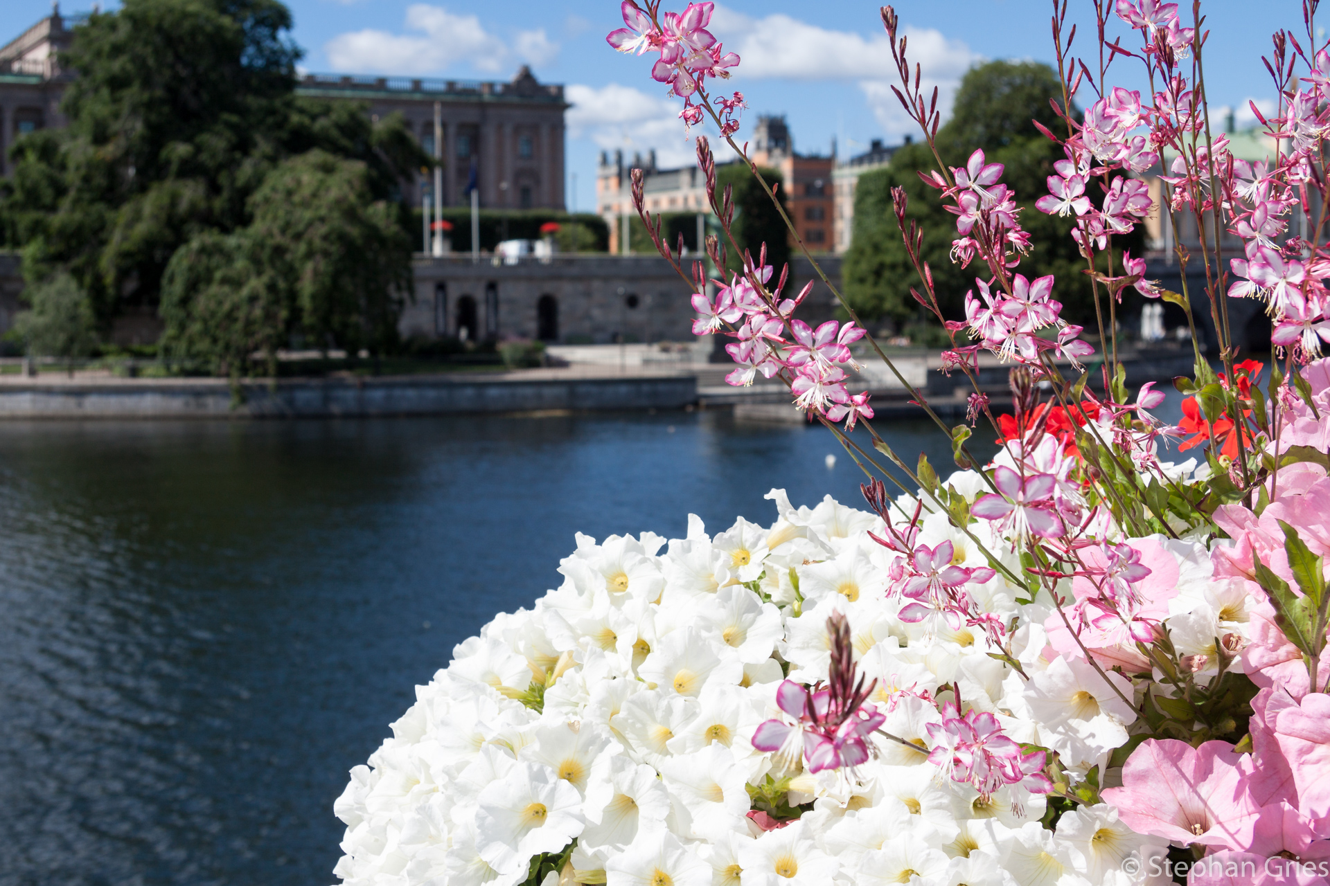 In sommerlicher Blütenpracht empfängt uns die Stockholmer Innenstadt.