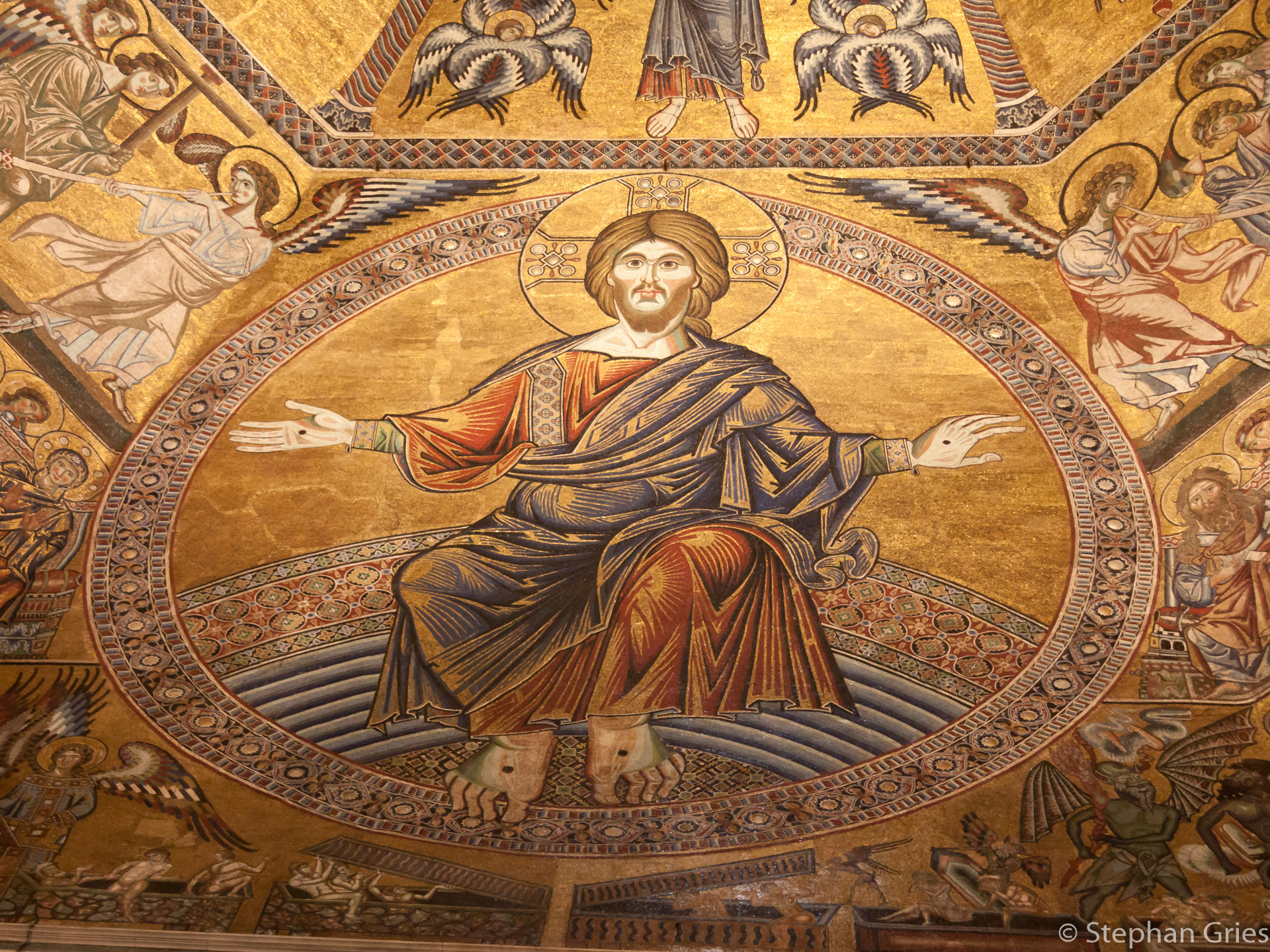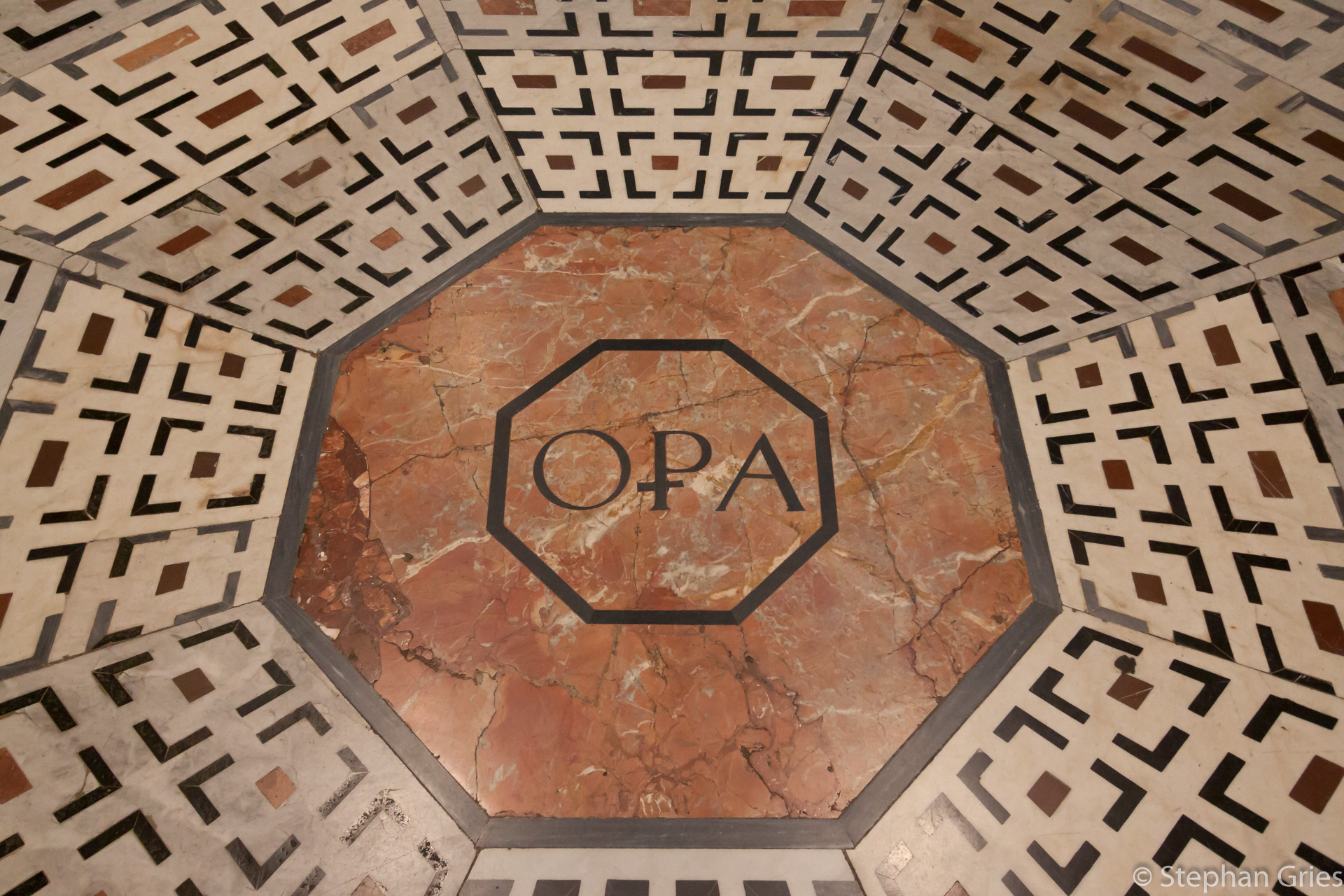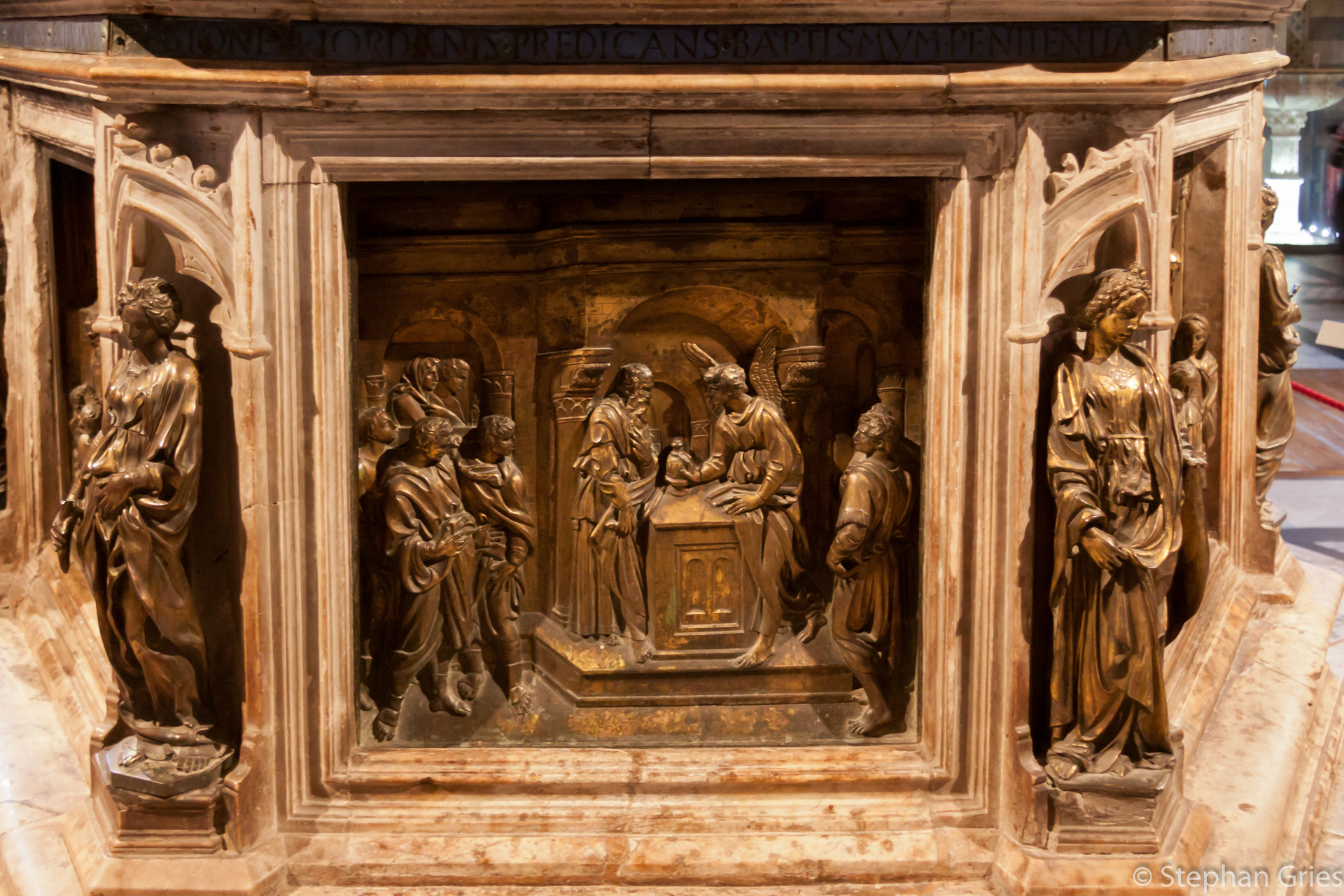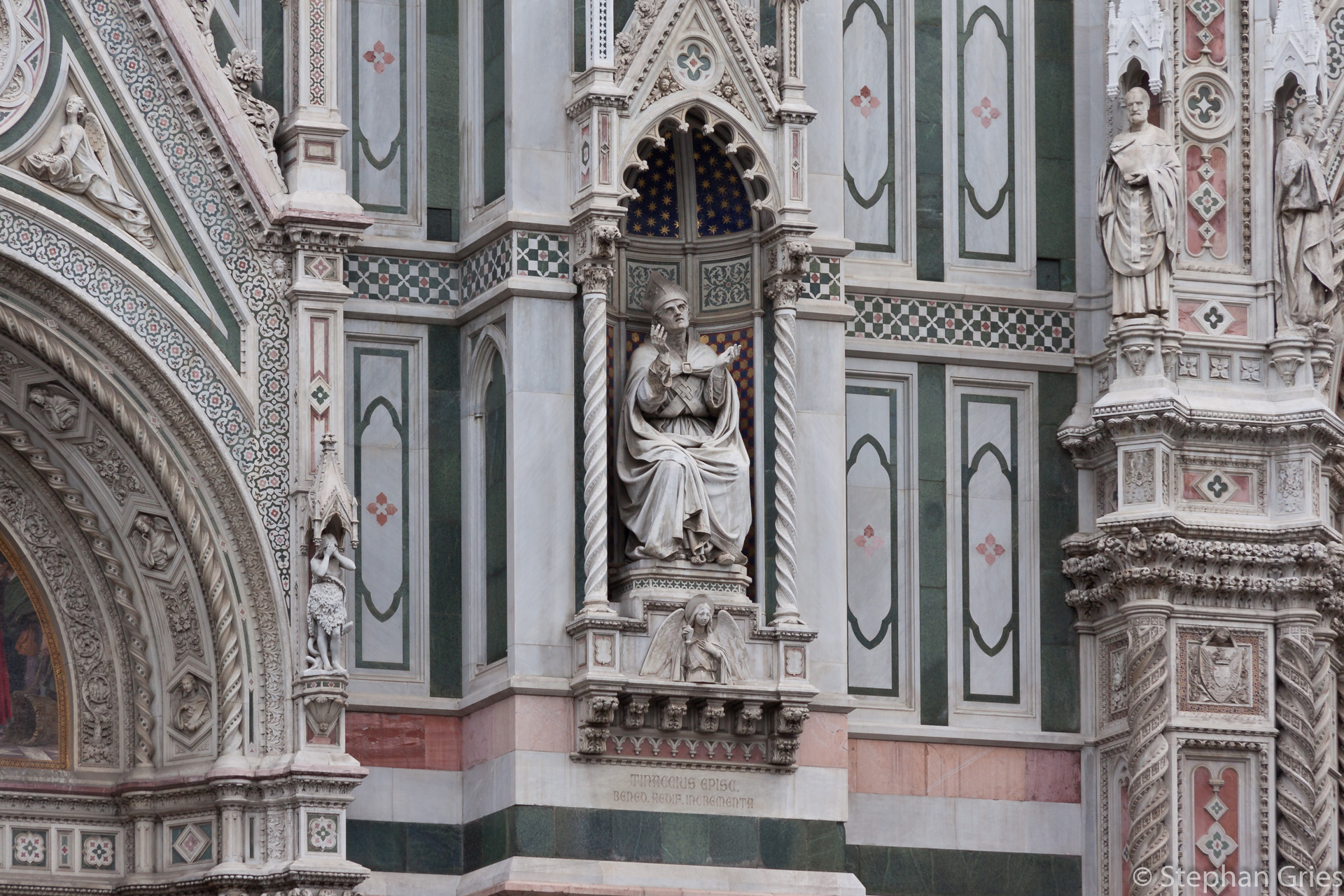 Das Eingangsportal des Domes. Leider sehr schwer zu fotografieren, da das achteckige Battistero San Giovanni, am rechten Bildrand, eine Frontalansicht nicht zulässt.