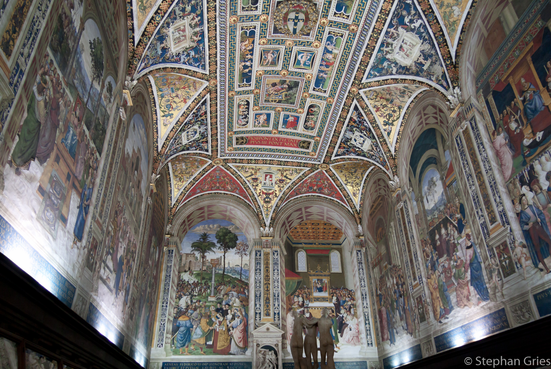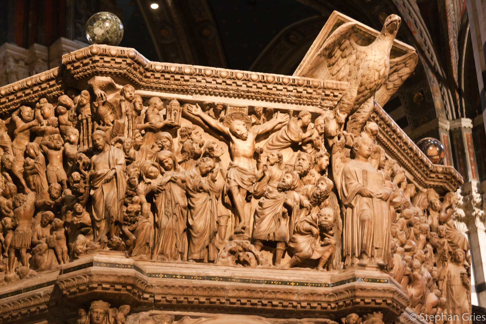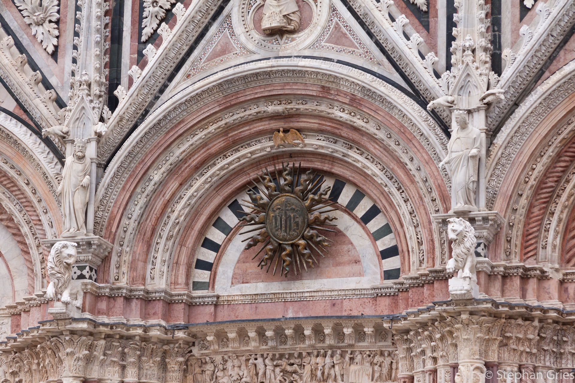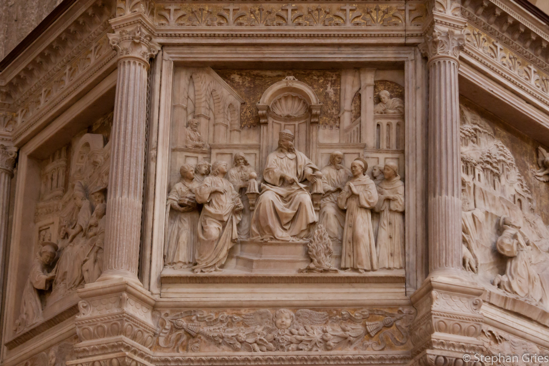 Das Eingangsportal des Domes. Leider sehr schwer zu fotografieren, da das achteckige Battistero San Giovanni, am rechten Bildrand, eine Frontalansicht nicht zulässt.